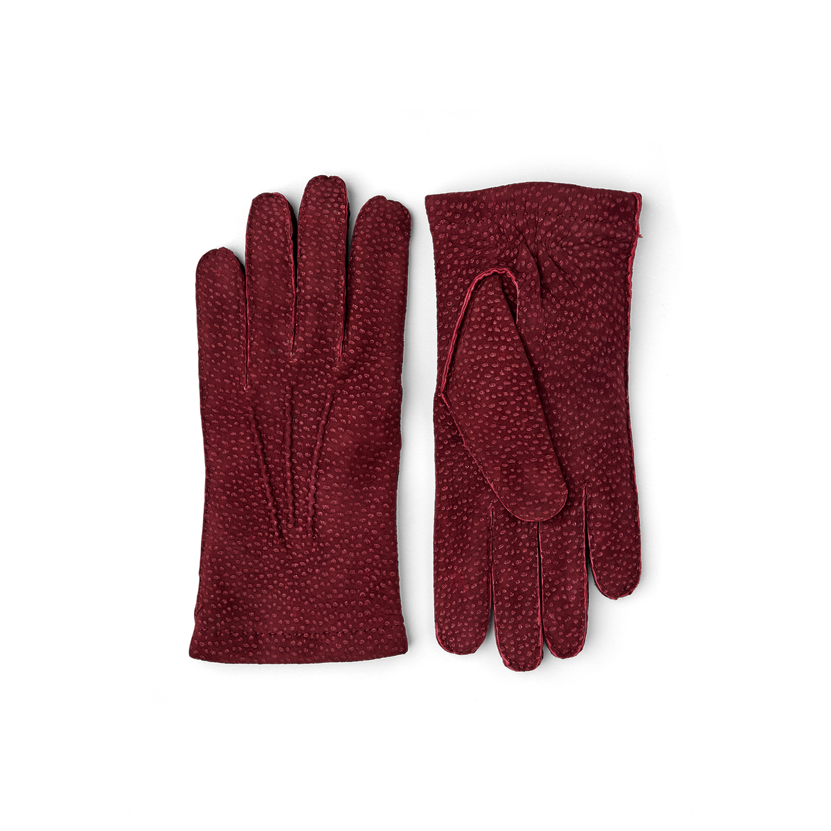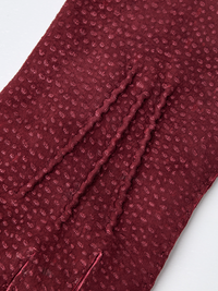 A handsewn glove in carpincho leather with its characteristic “speckled” texture. The carpincho is a South American rodent and glove cutters consider its leather to be one of ...